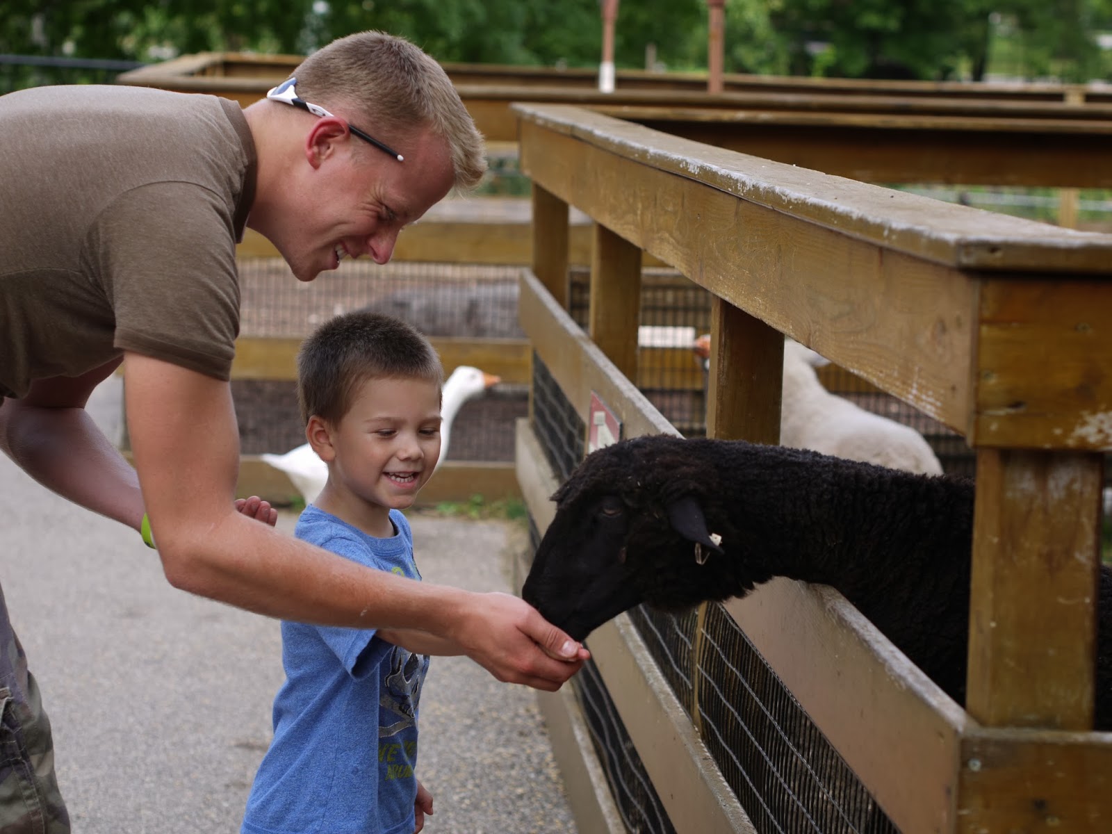 Zachary got the biggest kick out of feeding the goats, and then the fish and ducks. Auntie Lizzie apparently really missed Samer, because she kept trying to kiss all the animals. Llamas don't make good Samer Substitutes though...at least that's what she said.